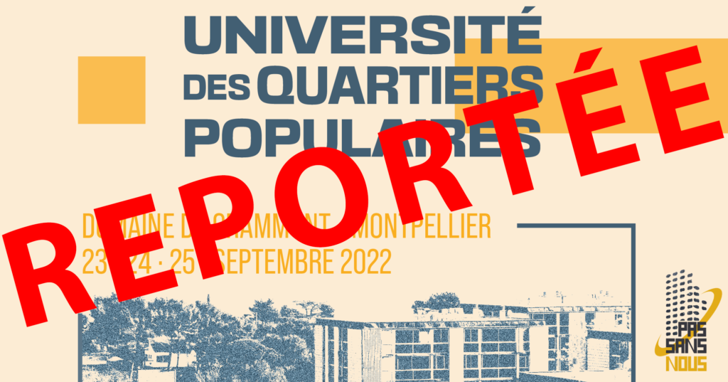 Nous avons le regret de vous annoncer le report de notre Université des Quartiers populaires programmée à Montpellier ce week-end.